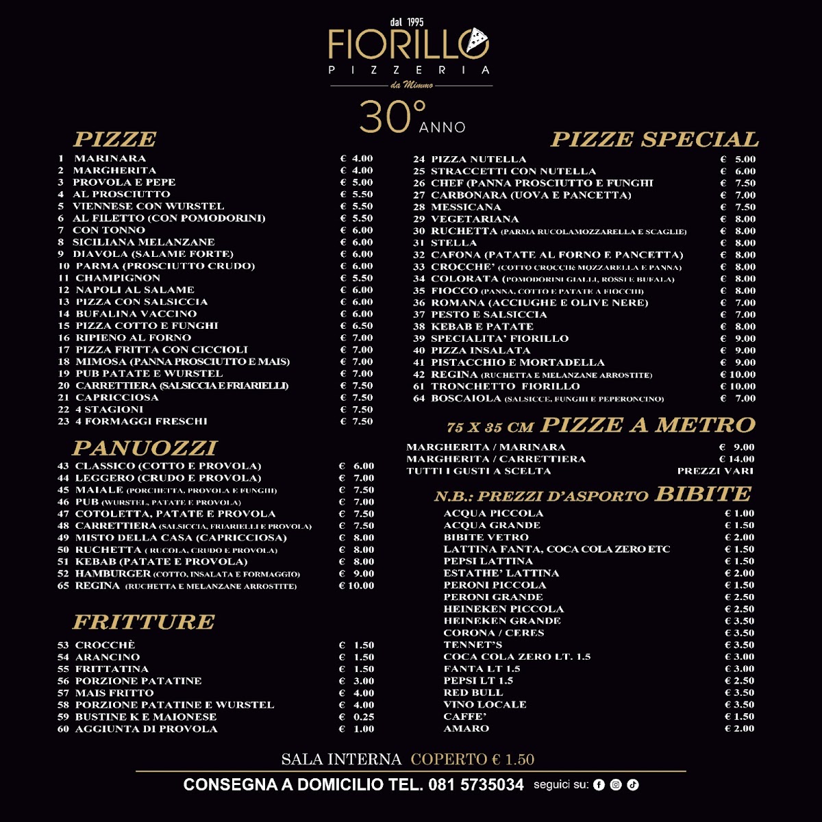 Pizzeria Fiorillo Da Mimmo 1995 Menu